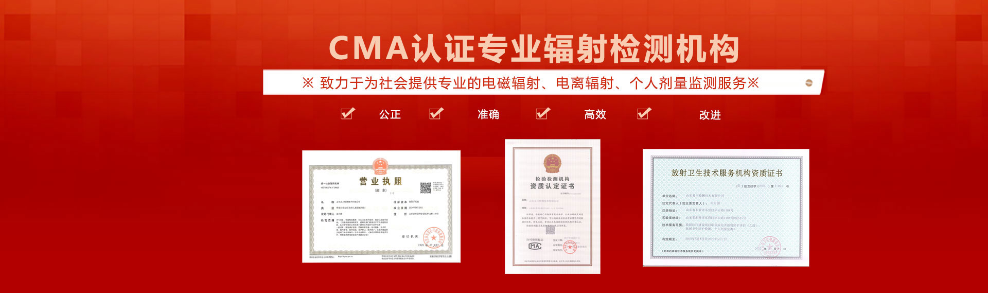 公司提供專業的電離輻射、電磁輻射、噪聲環境檢測,并提供CMA資質報告